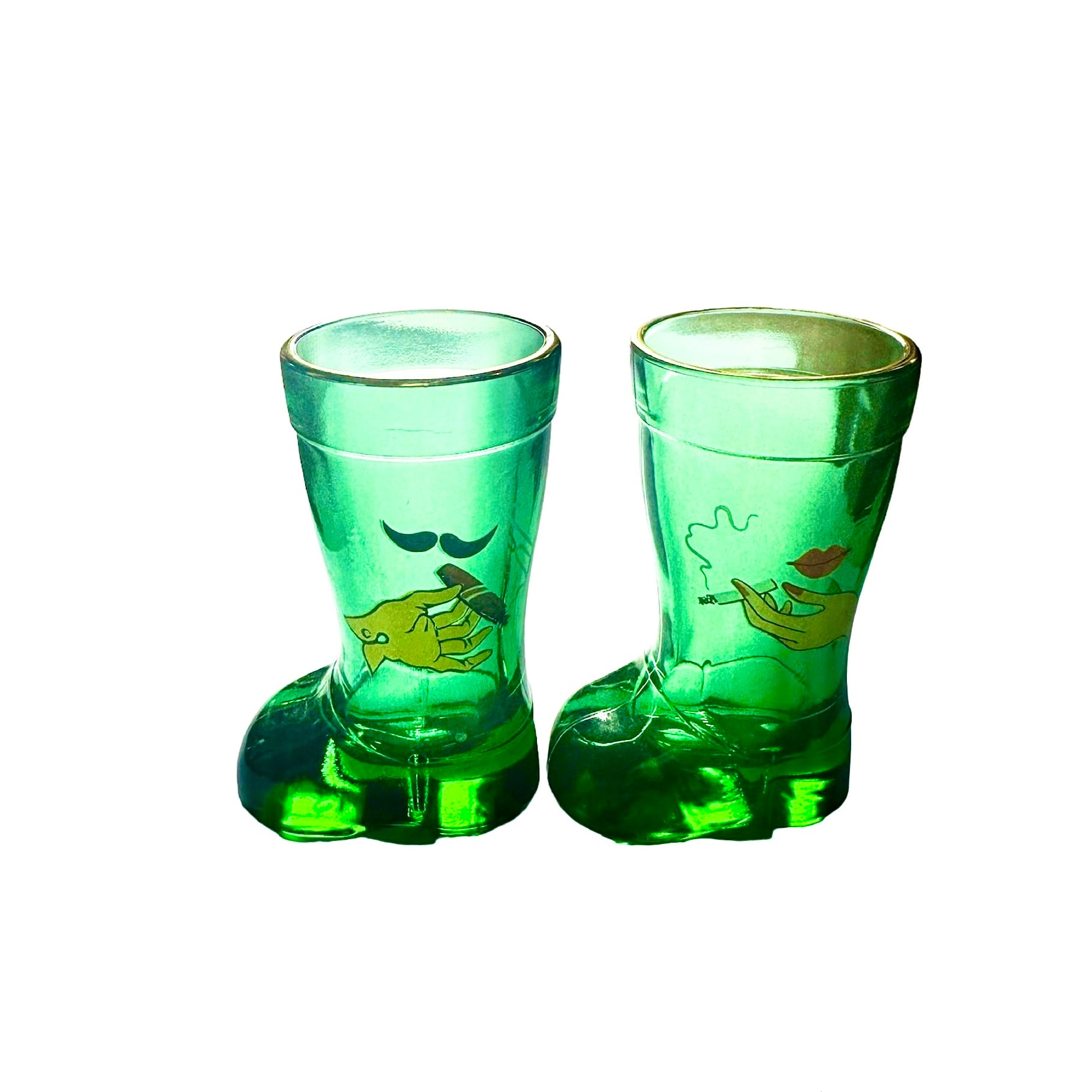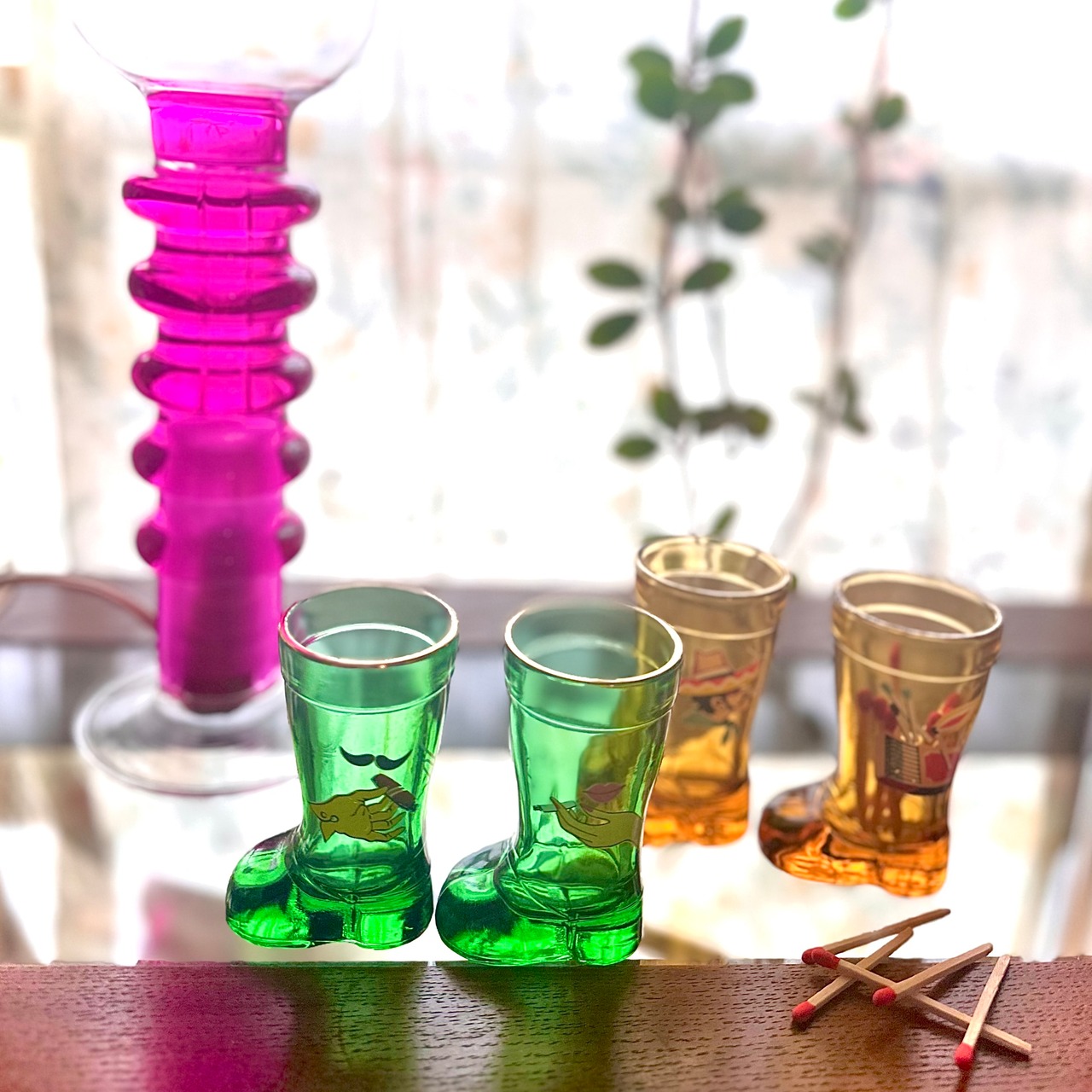 パイプと髭ガラスブーツ 花瓶 Vintage glass boots for flower vase