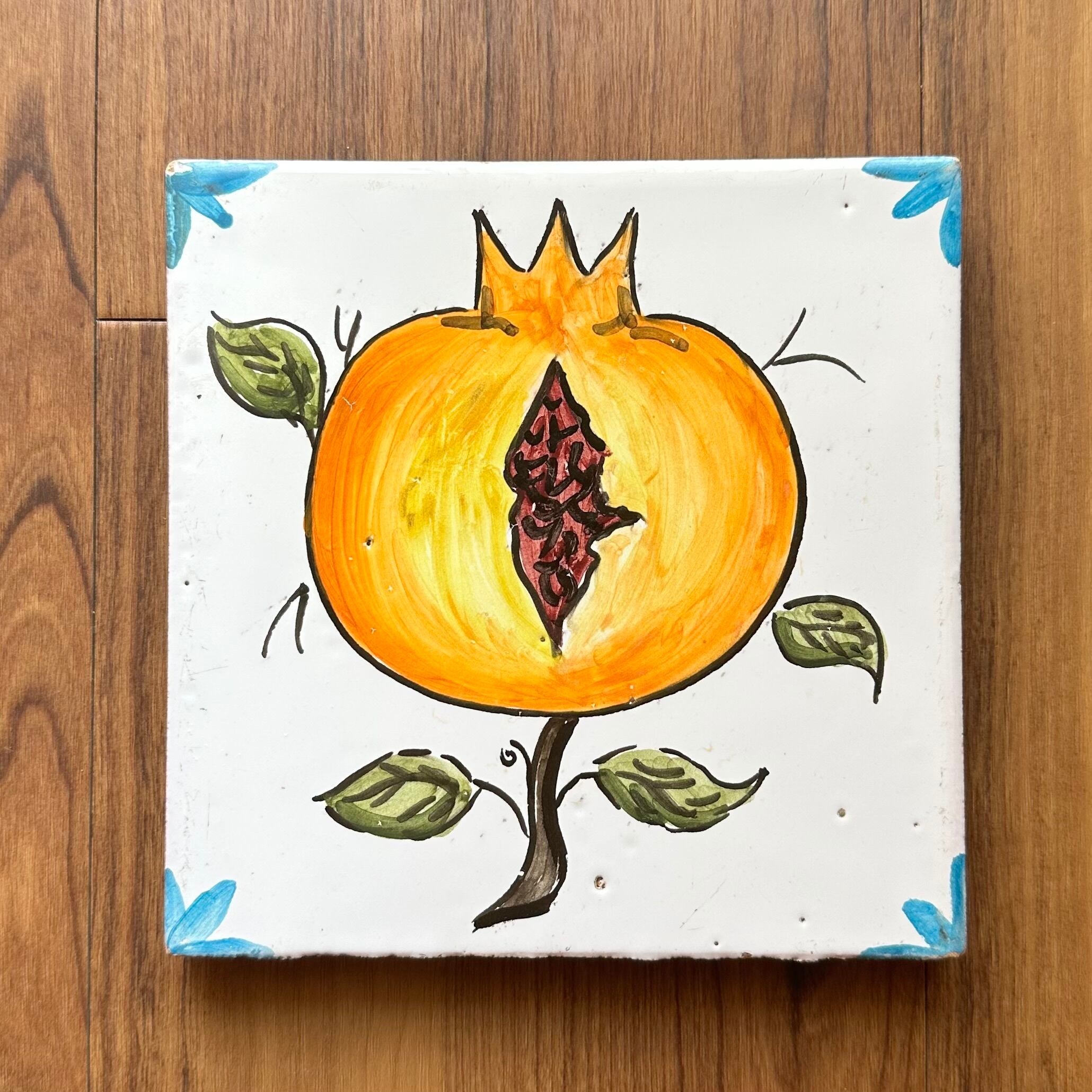 Pomegranate vintage tile with full of Ochin mood from South France