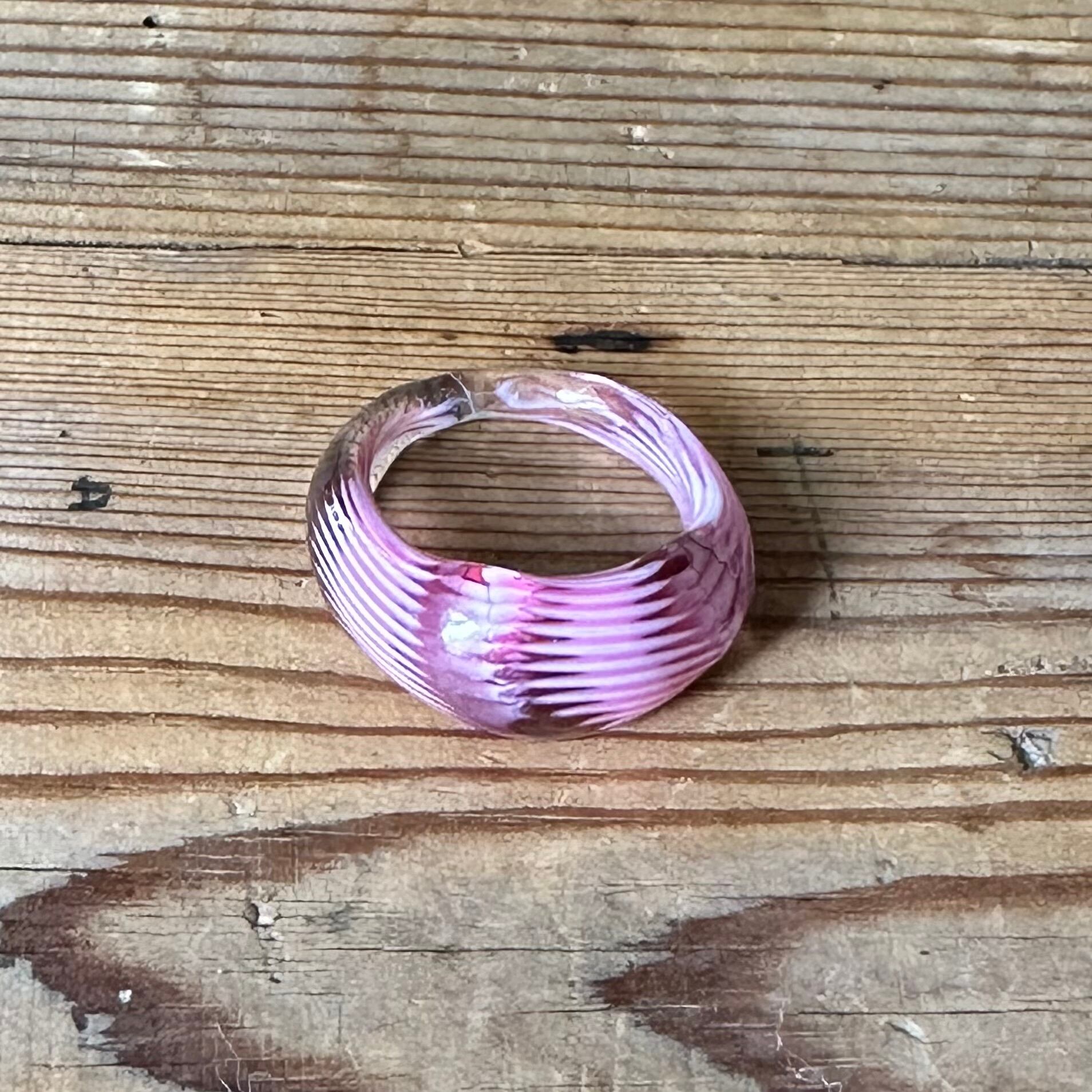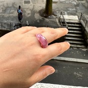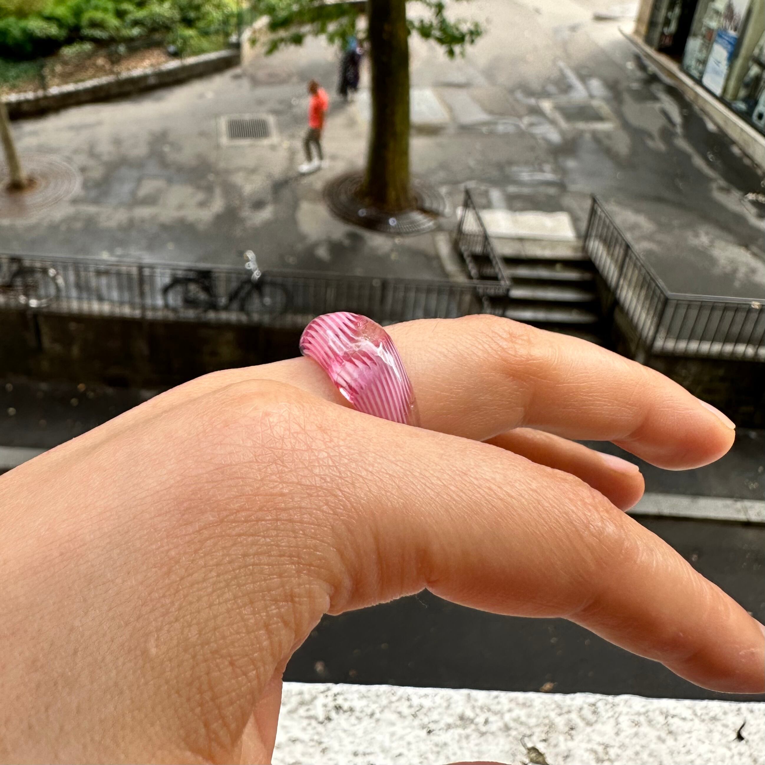The glass ring has Pinpin stripe inside and it changes shades depending on angles. So cute!